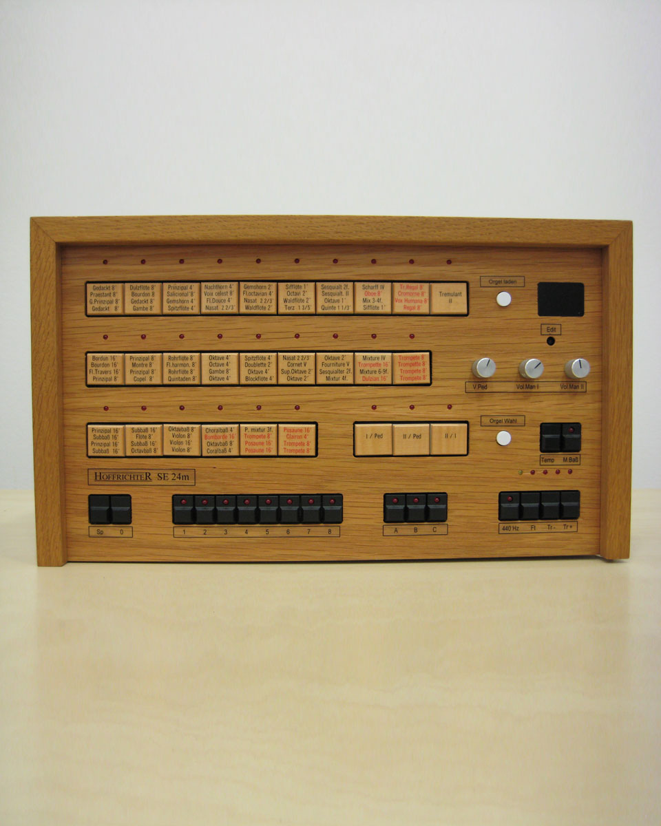 Der Orgel-Expander SE-24m beinhaltet 4 Dispositionen für 2 Manuale und Pedal. Außerdem verfügt das Modul über mehrere Cembalo-Klänge.Disposition (PDF)